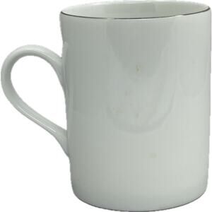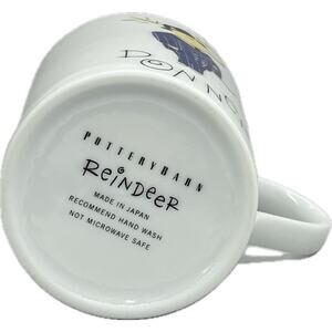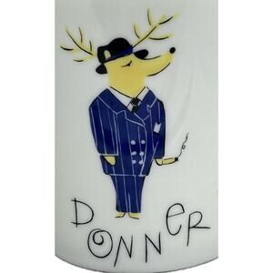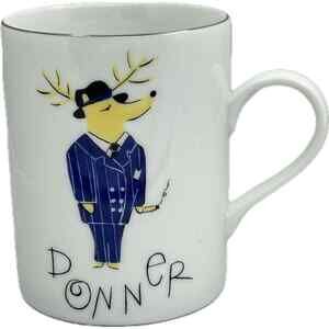 This is a great Pottery Barn DONNER Reindeer Porcelain Mug. It features Santa's reindeer Donner wearing a suit and hat and has a platinum rim.