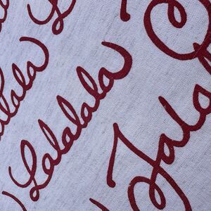 The Pottery Barn Falala 16” x 26” Lumbar Throw Pillow Cover is a festive addition to any home, with a Christmas and holiday theme in ivory and red. Made of a linen blend, this decorative pillow cover features a script pattern of “falalalalalalalala” in a rectangular shape. The zip closure makes it easy to add your own pillow insert. Add to the living room, bedroom, or guestroom for a touch of holiday cheer. The medium size and beige color make it versatile for various decor styles. Perfect for adding a cozy and whimsical touch to your home during the festive season.