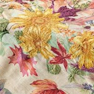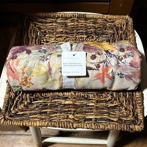 Pottery Barn Fall Botanical Table Throw BNWT. Brighten your dining area with this Pottery Barn floral table throw. Features a lively mix of colors for a stylish touch. With embroidery details. 50” x 50”.