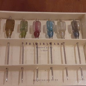 Pottery Barn Fancy Beaded Cocktail toothpicks set of (6)