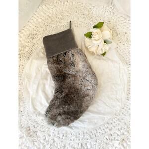 Pottery Barn Faux Fur Minky Grey Christmas Stocking Gray Holiday Decor LARGE