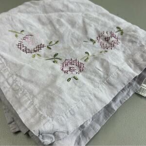 Pottery Barn Floral Embroidered Lavender Light Purple Linen Table Runner Top