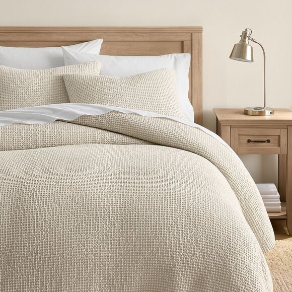Pottery Barn Full/Queen Honeycomb Waffle Duvet Tan Beige 100% Cotton 92in x 88in