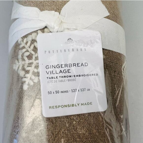 Pottery Barn Gingerbread Village Embroidered Table Throw Christmas NWT