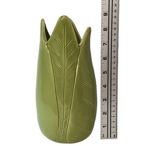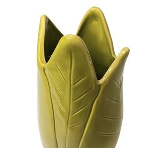 Pottery Barn Green Banana Leaf Vase Tropical Jungle 9"