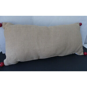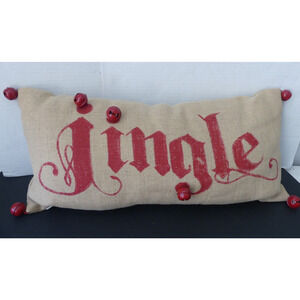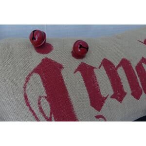 Pottery Barn JINGLE Bell Lumbar Pillow Christmas Holiday EUC Jute Red Bells 24"x12"