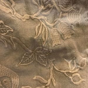 Pottery Barn Kelcie Pillow Cover Neutral 22 sq Embroidered Stonewash Birds Linen