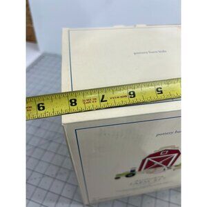 Box shows minor discoloration and a small dent; barn set is in excellent condition. Box dimensions approximately: 10 x 8 x 5 inches.
