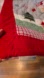 Very cute quilt featuring appliqued Santa and Reindeer, trees and houses with a red corduroy border