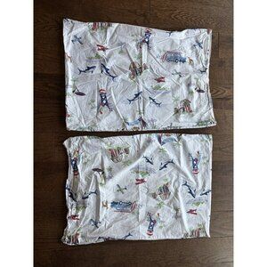 Pottery Barn Kids Beach Tropical Car Shark Plane Surf Standard PAIR Pillow Cases