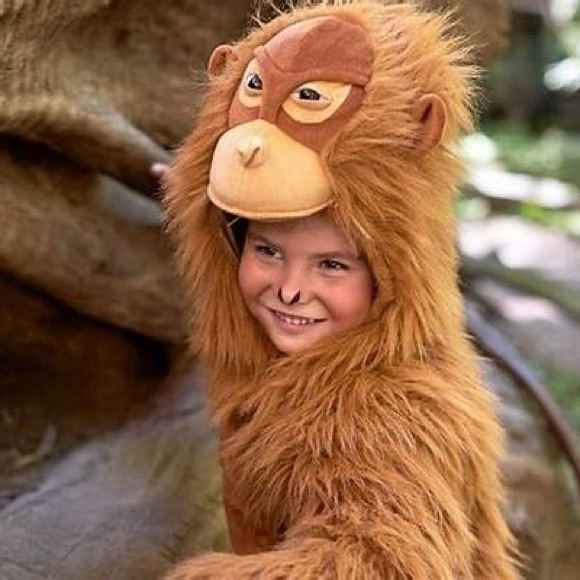 Adorable monkey “orangutan” costume with plush fur. Features a detailed monkey face hood. Perfect for playful adventures.