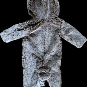Adorable monkey costume with plush texture. Features cute ears and a friendly face. Perfect for Halloween fun.