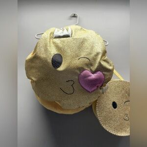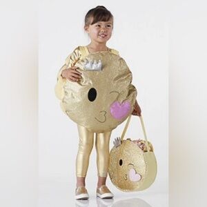 Pottery Barn Kids Gold Sparkly Emoji 3D Costume And Treat Bag Size 4-6 Adorable gold emoji costume set for kids. Features a shiny gold color with playful emoji details. Perfect for dress-up and parties.