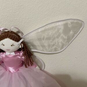 Pottery Barn Kids Designer Doll Butterfly Wings Fairy Pink Tulle Dress Brown Hair and Brown Eyes. A beautiful hanging doll with butterfly fairy wings and a pink tulle dress. Such a beautiful doll. Good Used Condition.