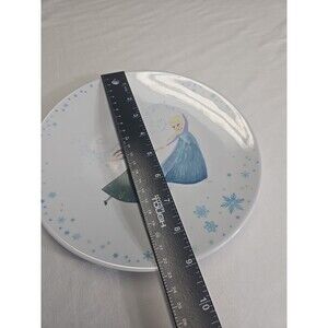 Pottery Barn Kids Disney Frozen dinner plate in 9 inch size. Used condition with some scratches. Plastic material, dishwasher safe, but doesn't not microwave.