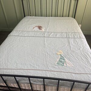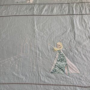 Pottery Barn Kids Disney Frozen Elsa Anna Olaf Quilt Twin Blue Applique Sequin