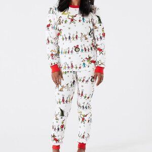 Even the grumpiest of Grinches can get into the Christmas spirit with this very merry pajama set. The set includes a so-soft pure cotton knit pull-over top and elastic waistband bottoms so the whole family can match on Christmas day for cozy, picture-perfect moments.