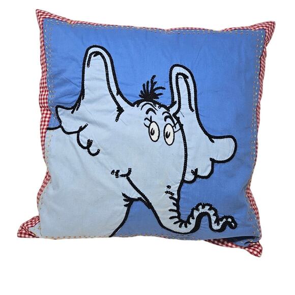 Pottery Barn Kids Dr. Suess Horton Hears A Who 16x16 Throw Pillow Nursery. Gingham backing. Cotton