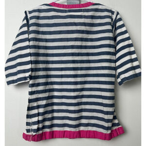 This Pottery Barn Kids Girl’s Size 6-12 Swim Suit Coverup is a stylish and functional addition to your little girl's swimwear collection. Made from 100% cotton in a white, black, and pink striped pattern, this coverup features pink tassels and trim accents for a fun and feminine touch. Perfect for the beach or pool, this coverup is both practical and cute, making it a must-have for your little girl.