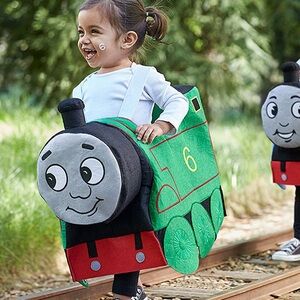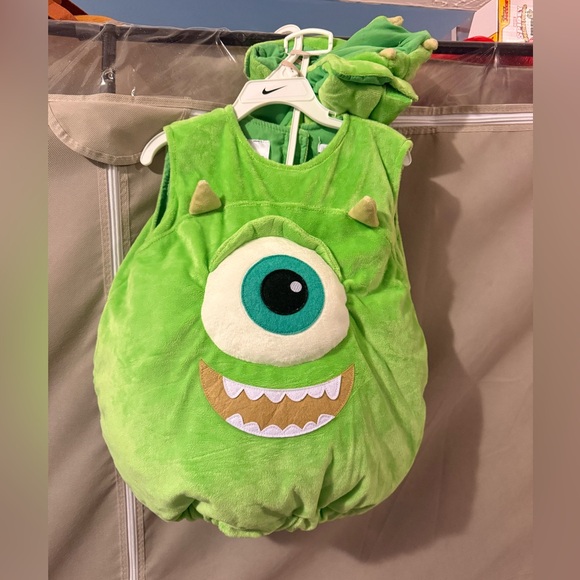 Adorable green monster costume. Features a large eye and playful design. Perfect for Halloween fun. Size 2/3t