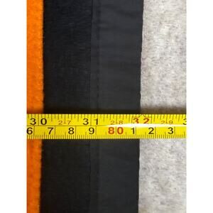 Three grommets on top hold it up. Black, gray and orange felt with an image of a Spooky Haunted Halloween Mansion.