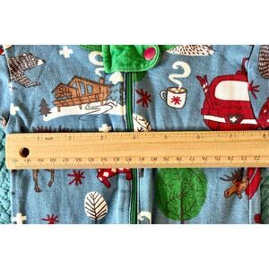 Hatley Footed Pajamas Blue Multi Vintage Ski Print. Made to be snug fitting, full-length zip closure with inside zipper guard, snap tab at neckline, long sleeves, footed with non-skid soles.