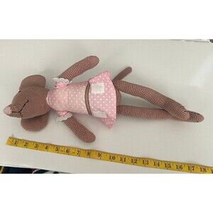 Pottery Barn Kids Knit Crochet Mouse Plush With Pink Dress with white polka dots PBK Stuffed Animal Doll 2008 Long Legs Rare