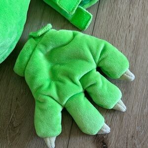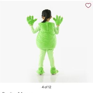 Adorable green monster costume. Features a large eye and playful teeth. Includes matching gloves and feet.