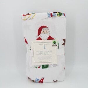 Pottery Barn Kids Organic Flannel Jolly Santa Toddler Sheet Set NEW