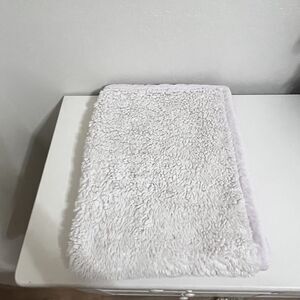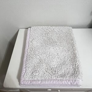 Pottery Barn Kids PBK Pink Velour White Sherpa Faux Fur Baby Blanket Lovey Lovie Blankie. So soft and warm. One side is soft pink velour and the other is faux fur sherpa-like material. Has been used and washed, there are some marks/spots on the pink velour side and normal wash wear and some matting to the sherpa side. Please see the pictures. Still has a ton of life left, but is not perfect.