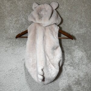 Adorable Pottery Barn Kids pig costume in size 12–24 months. Plush, hooded romper design with soft faux fur exterior and satin belly panel. Fully lined interior, metal snap closure, and matching pig ear hood and tail. Quality construction and super cozy for costume parties, playtime, photos, or Halloween.