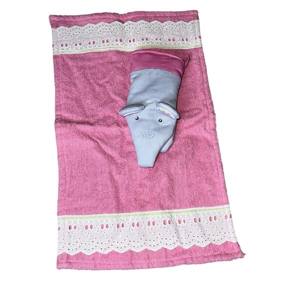 Pottery Barn Kids Pink Elephant Kitchen set dish towel and elephant oven mitt