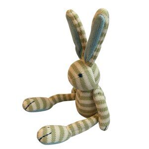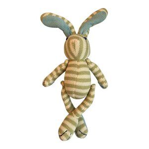 Pottery Barn Kids Retired Bunny Plush With Green & White Stripes And Blue Ears