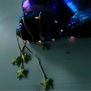 Shiny blue astronaut costume with purple accents. Includes star details and matching headband. Perfect for Halloween adventures.