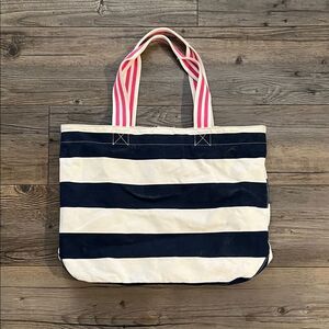Pottery Barn Kids Striped Baby Bag with Pink Handles