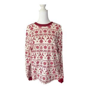 Pottery Barn Kids Women’s Size M Organic Cotton Red Christmas Sleep Top EUC