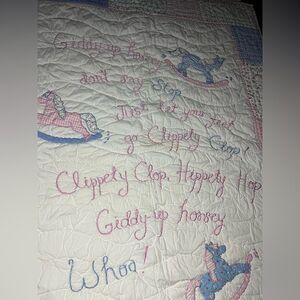Pottery Barn Kids Vintage Quilt Blanket Giddy Up Horsey appliqués embroidery