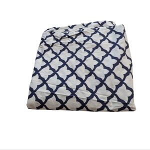 Pottery Barn King Flat Sheet Organic Cotton Navy White Patterned Trellis Preppy