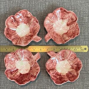 Pottery Barn Majolica Snack Bowls Flowers Set of 4 Mauve Hint of Green Ceramic