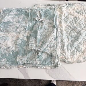 Pottery Barn Matine toile euro shams, three available, sold individually, but I do have the matching king size toile bedskirt, matching toile 18x18 pillow and a pottery barn matelasse large bolster pillow that matches this set. These are shown in the second to the last photo here, but are sold separately. The last photo shows the matching fabric we have (tons!!) which is also listed separately in our closet.