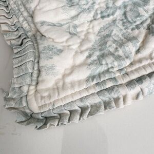 Pottery Barn Matine Blue Toile Linen Bedding, Bed Skirt and Pillows & Matelasse