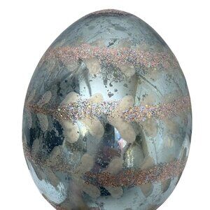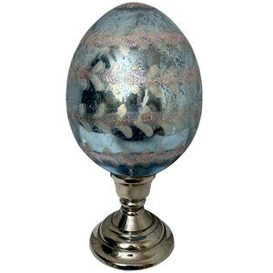 Pottery Barn Mercury Glass Egg Pedestal 8.5" high Pastel Blue Easter Decor