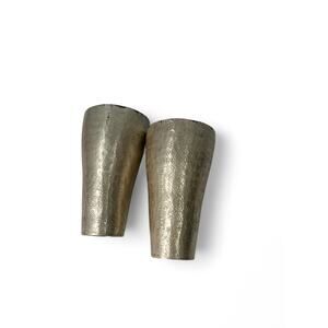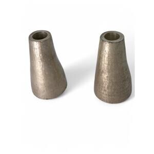 Pottery Barn Metal Pillar Candle Stick Holders Set of 2 Pewter Brushed Silver