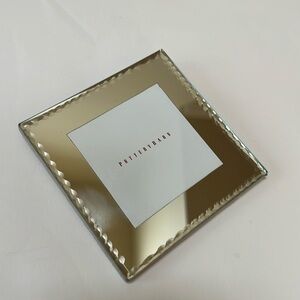 Pottery Barn Mirrored Square Frame Ornament. This item is Brand New and never used. No issues to note. No odor. Note that the mirror is clear/silver in color. My photos are showing up gold/yellow tone because my walls are beige.