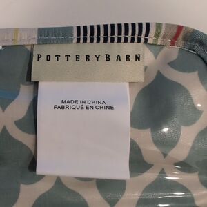 Pottery Barn Mixed Stripe Jewelry Roll Travel Organizer Bag. This bag features a cotton multi color mixed stripe on the outside, 1 interior divided zipper pocket, 2 interior full zipper pockets, and 1 interior strap with a snap closure. Spot clean. Great bag to organize your jewelry for traveling or to keep at home.