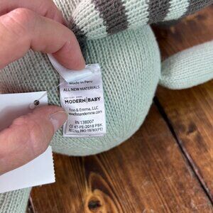 Pottery Barn Modern Baby Knit Raccoon Stuffed Animal Plush Toy 15” Tall