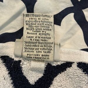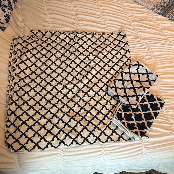 Pottery Barn Navy Blue & Cream Trellis Set | Shower Curtain + Two Hand Towels