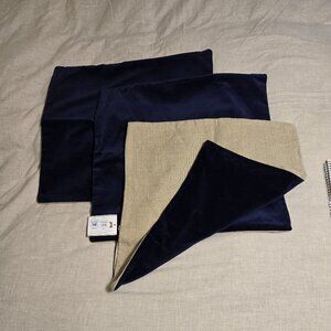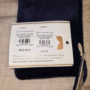 Enhance your home decor with the luxurious Pottery Barn navy blue velvet and linen pillow cover. This listing is for one. You can buy up to three as long as they are available. These brand-new, with and without tags, pillow covers showcase an exquisite combination of rich navy blue velvet on one side and a sophisticated linen texture on the other. Perfect for adding a touch of elegance and texture to any space, these covers are versatile and stylish. Measuring a convenient size to fit standard cushions, they're easy to slip on and off, making them ideal for quick seasonal updates. The deep navy hue complements various color schemes, while the linen side offers a natural, earthy feel. Three pieces available, these pillow covers provide the perfect blend of comfort and class to elevate your living room, bedroom, or any cozy nook in your home. 1 has tag, two do not, and none have been used. Fillers NOT included.