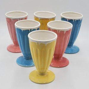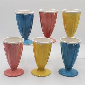 • Pottery Barn Outlet colorful milkshake ceramic glasses – set of six (6)
