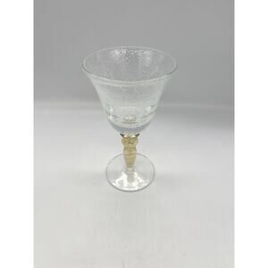 Pottery Barn PBY6 Water Goblet Amber Stem Bubble Glass Seeded 7.25”